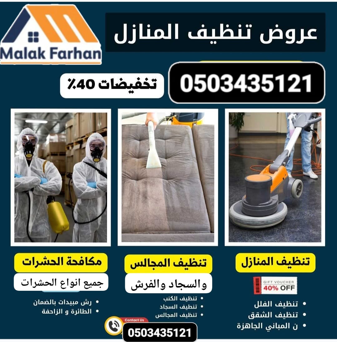 التي توفر لك افضل خدمات متخصصة في نظافة المنازل والشقق والفلل وتنظيف الكنب والمجالس والسجاد ، وكذلك مكافحة الحشرات وتنظيف الخزانات بارخص الاسعار .
